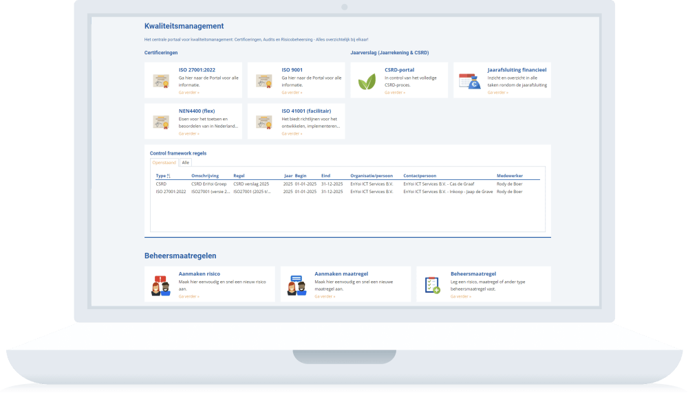 Control Framework helpt organisaties om grip te houden op hun interne beheersing en compliance. In plaats van losse controles of ad-hoc lijsten leg je in AFAS alles gestructureerd vast in één centrale omgeving.