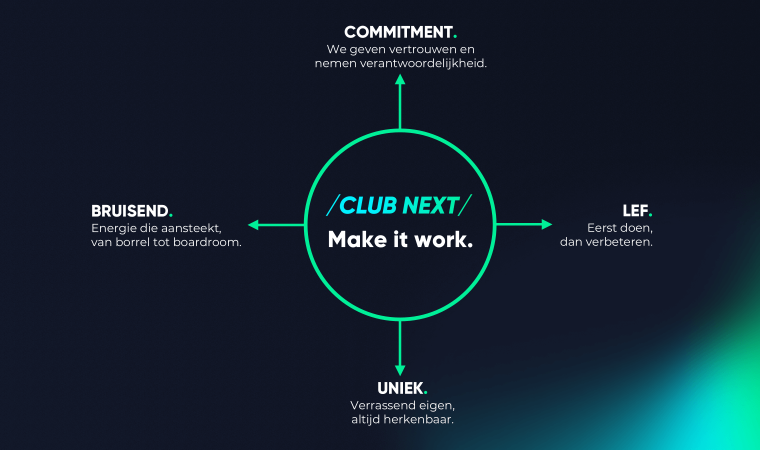 Bij Next Standard draait cultuur niet om regels of posters aan de muur, maar om CLUB: ons kompas dat richting geeft aan hoe we werken en samenwerken. Het laat zien wat ons verbindt, hoe we keuzes maken en hoe we plezier houden in wat we doen.